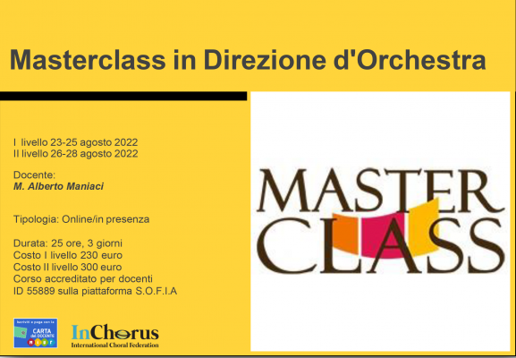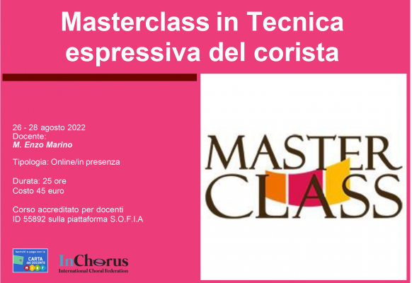 Masterclass estive per Coristi, acquistabile anche con carta docente e valido alla formazione prevista per i docenti di ogni ordine e grado.