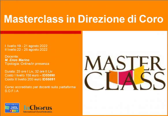 Masterclass estive per Direttori di Coro, acquistabile anche con carta docente e valido alla formazione prevista per i docenti di ogni ordine e grado.
