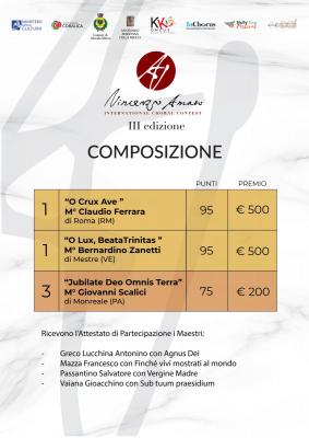 Tutti i premi assegnati nel III Concorso Corale e di Composizione