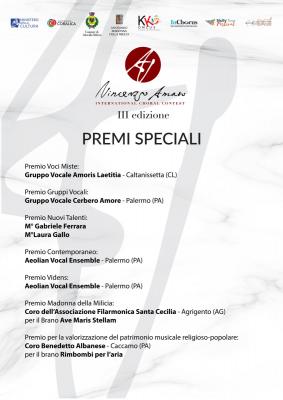 - 𝗚𝗿𝘂𝗽𝗽𝗼 𝗩𝗼𝗰𝗮𝗹𝗲 𝗖𝗲𝗿𝗯𝗲𝗿𝗼 𝗔𝗺𝗼𝗿𝗲 di Palermo, Primo premio Ex aequo punti 91,5/100 - euro 600