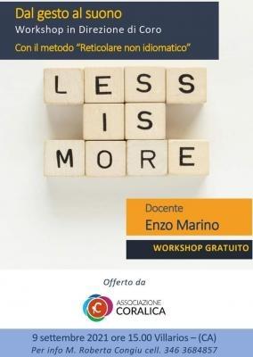 Giorno 9 settembre 2021 a Villarios (CA), si terrà il Workshop in Direzione di Coro "Dal gesto al suono" con il metodo "Reticolare non Idiomatico" del M° Enzo Marino.